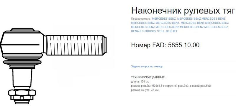 Москва | 33949 | Sem Lastik | 8656 | наконечник рулевой тяги !прод LHT M30x1.5 M27x1.5/32 L120\ MB Actros | 1 шт | 8 дн | 2 393 ⃀ | |