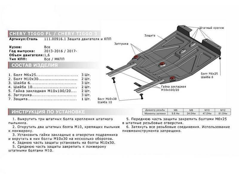 Москва | 2919 | NLZ | NLZ6318030NEW | Защита картера для CHERY Tiggo 3 (17-) 1,6 бен. АТ МТ / Черри Тигго 3 | 1 шт | 15 дн | 7 926 ⃀ | |