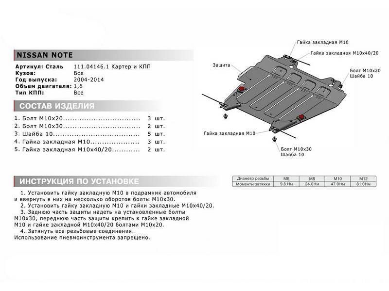 Москва | 28052 | Alfeco | ALF1507ST | Защита картера и МКПП (сталь 2 мм) + комплект крепежа для Nissan Note (E11) 2005-2013 (V - 1.4MT) | 2 шт | 10 дн | 5 907 ⃀ | |