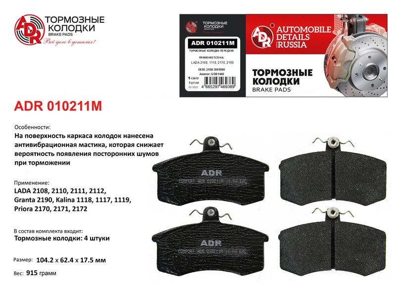 Череповец | 28221 | Ganz | GRJ09001 | Колодки передние для ВАЗ 2108-15 GANZ GRJ09001 | 600 шт | 10 дн | 470 ⃀ | |