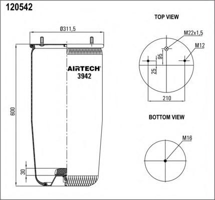 Минск | 34697 | Sampa | SP55942 | пневмоподушка! h=600 2 шп. M12 смещ. 25. 1 отв. штуц. M22. Н: 1 шп. M16\ BPW | 1 шт | 10 дн | 8 826 ⃀ | |