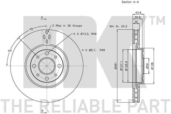 Минск | 32088 | Nakayama | Q5401 | Торм.диск перед. (вент.) FIAT STILO 2.4 20V/1.9JTD 01- (281x26x4) | 2 штпо 2 шт | 12 дн | 3 701 ⃀ | |