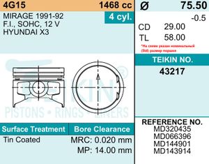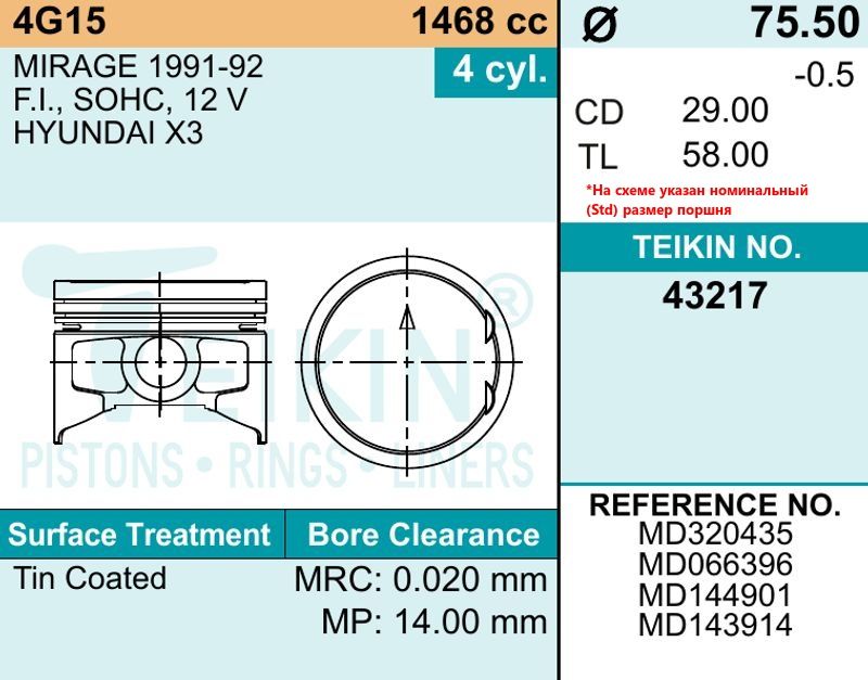 Санкт-Петербург | 31429 | United Motors | PC1167000 | Поршень STD с кольцами Mitsubishi 4G15 d75.5 STD (MD320435) UM | 2 шт | 23 дн | 2 413 ⃀ | |