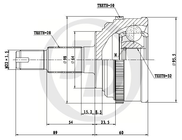- Внешнее зубчатое соединение со стороны колеса28