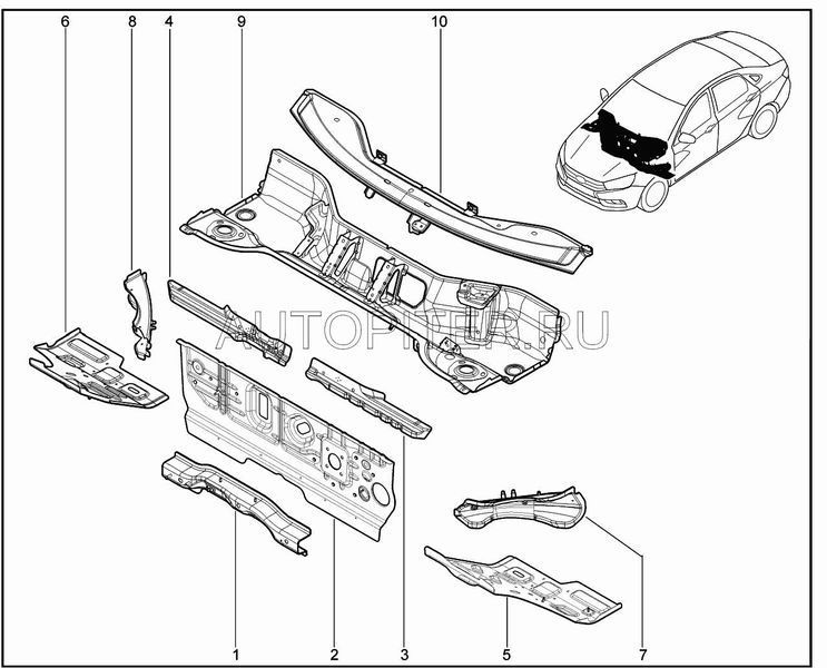 Соединитель щитка передка и пола левый в сборе (катафорез)