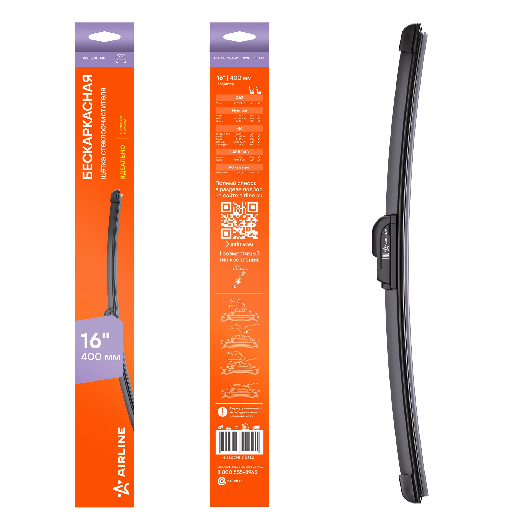 Челябинск | 10451 | Aido | AD405C16 | Щетка стеклоочистителя каркасная Aido 16"/400 мм крюк | 154 шт | 12 дн | 152 ⃀ | |