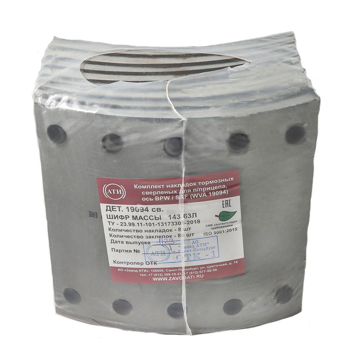Санкт-Петербург | 32808 | АТИ | 19094R1 | Комплект тормозных накладок для п/прицепа, ось BPW,SAF дет. 19094 R1 (WVA 19094 R1) сверленых 8 штук | 130 шт | 26 дн | 3 836 ⃀ | |