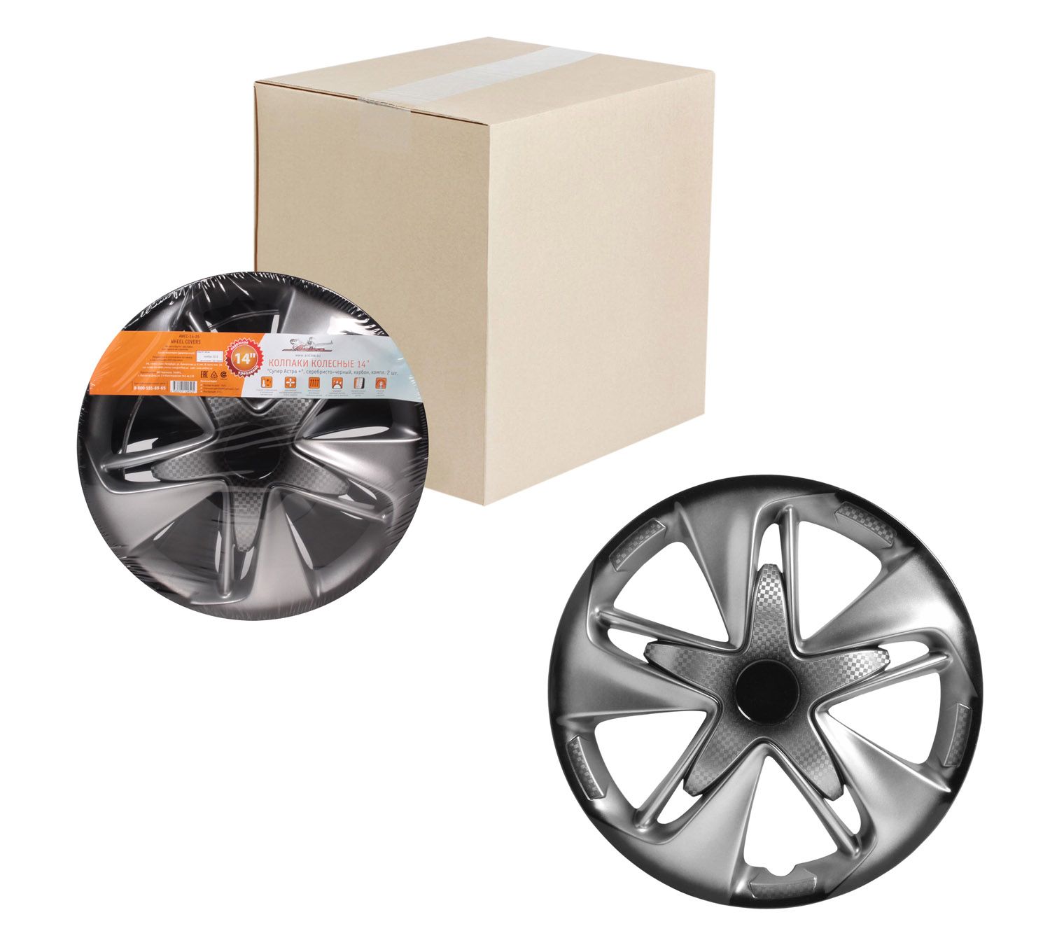 Колпаки колесные 14" "Гелакси Т", серебристый/черный, карбон, компл. 2 шт. AWCC-14-23 AIRLINE
