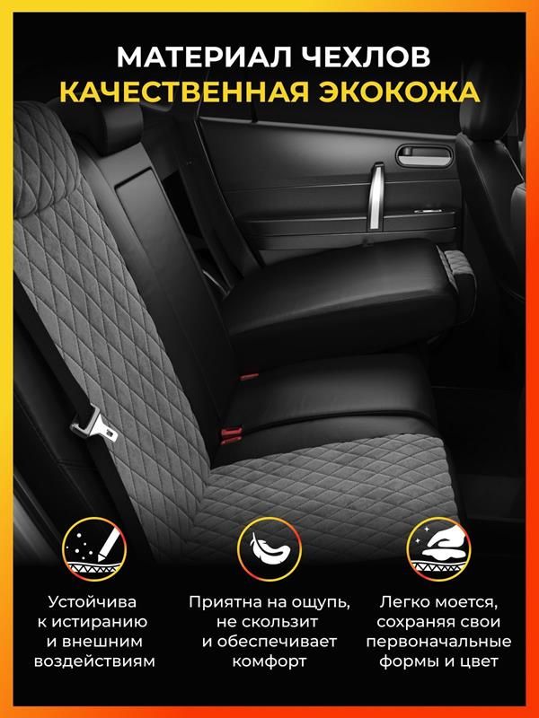 Чехлы сидений_RIVAL_задняя спинка 40/60, рисунок РомбИскуственная кожаRapid (комплектации с задним п