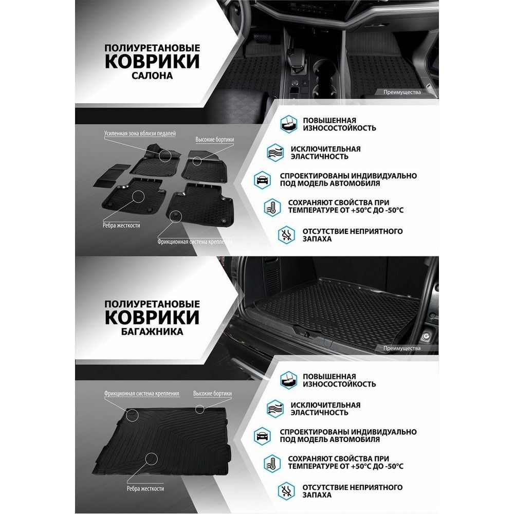 Комплект ковриков салона и багажника Rival для Lada 4х4 2131 5-дв. 1995-н.в., полиуретан, с крепежом