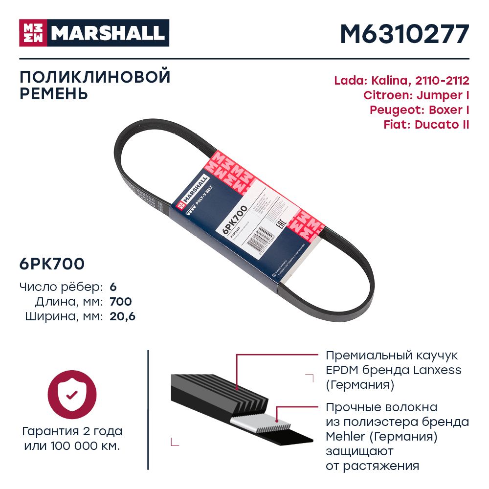 Ремень поликлиновой 6PK0700 (EPDM)