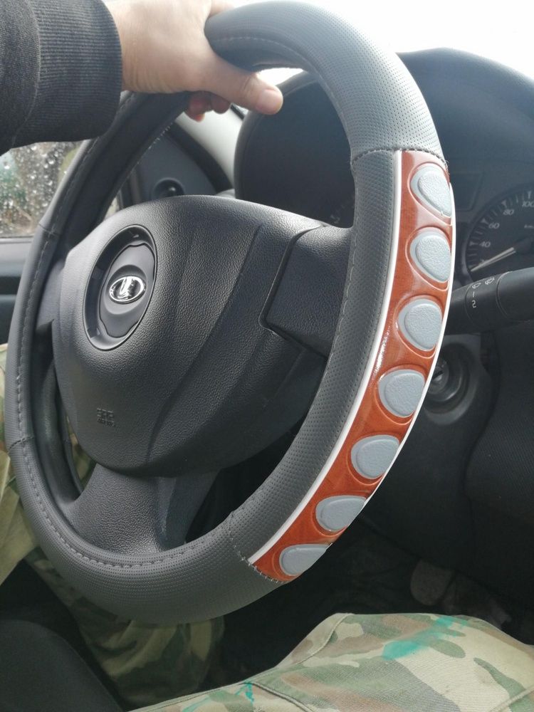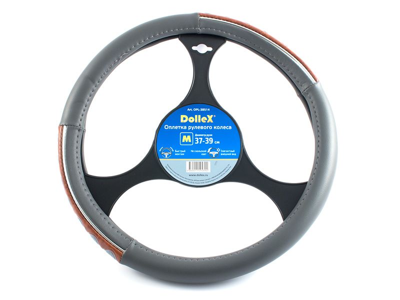 "Оплeтка ""М"" 38 см иск.кожа серая вставка дерево"