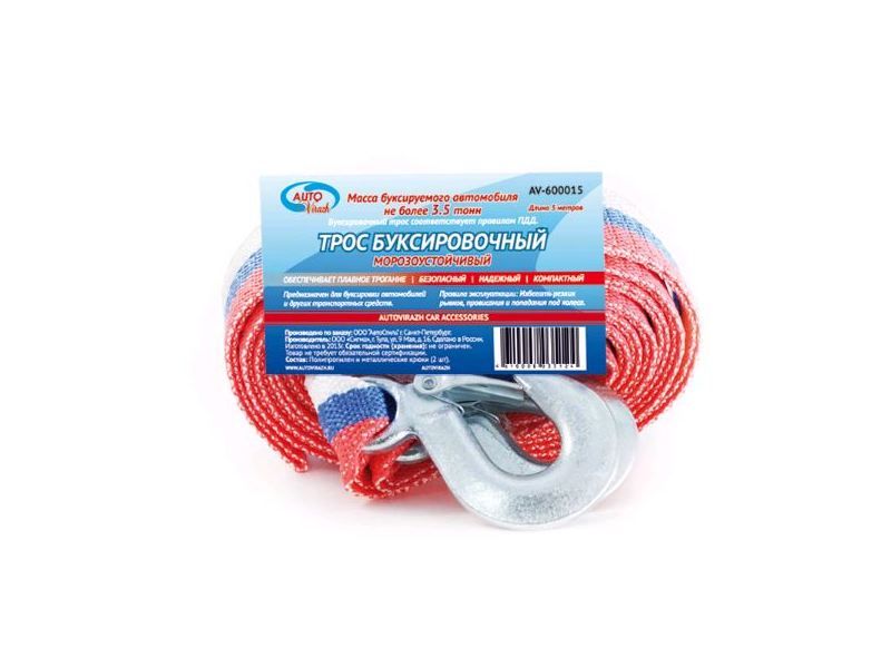 Москва | 16989 | Автостоп | AB5K | Трос буксировочный AB-5K 5000кг длина 4.8м, ленточный (с крюками) в пакете АВТОСТОП /1/30 HIT | 5 шт | 13 дн | 366 ⃀ | |