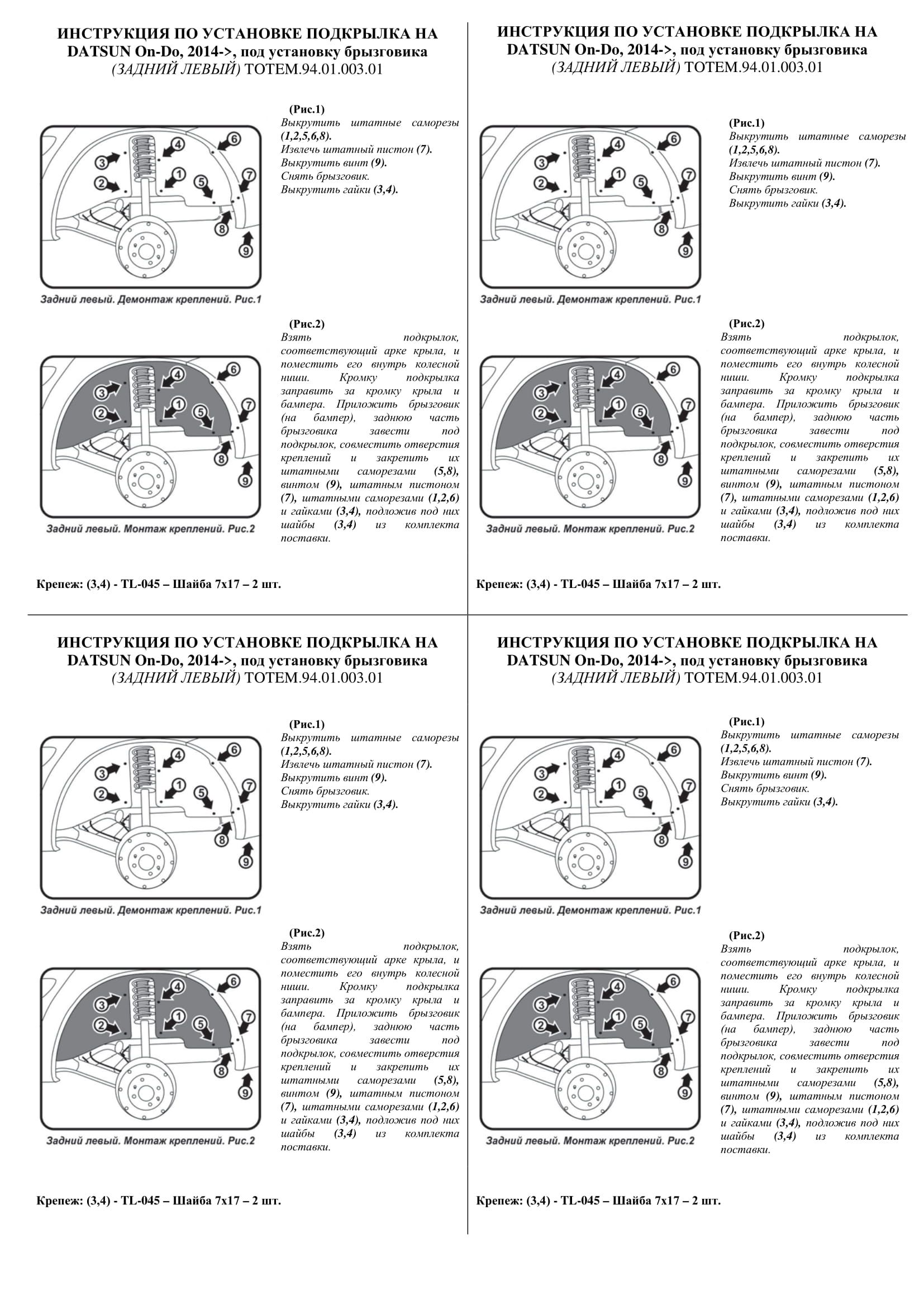 Подкрылок DATSUN on-DO, 07/2014->, под установку брызговика (задний левый), шт