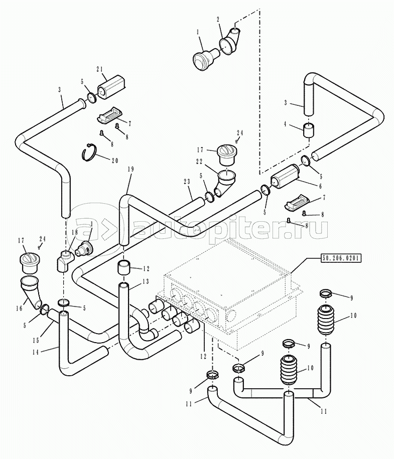 50.206.0203(01) - CAB AIR CONDITIONING (HOT/COLD) - WATER DELIVERY PIPES/SYSTEM (VAR.742014) - C7428