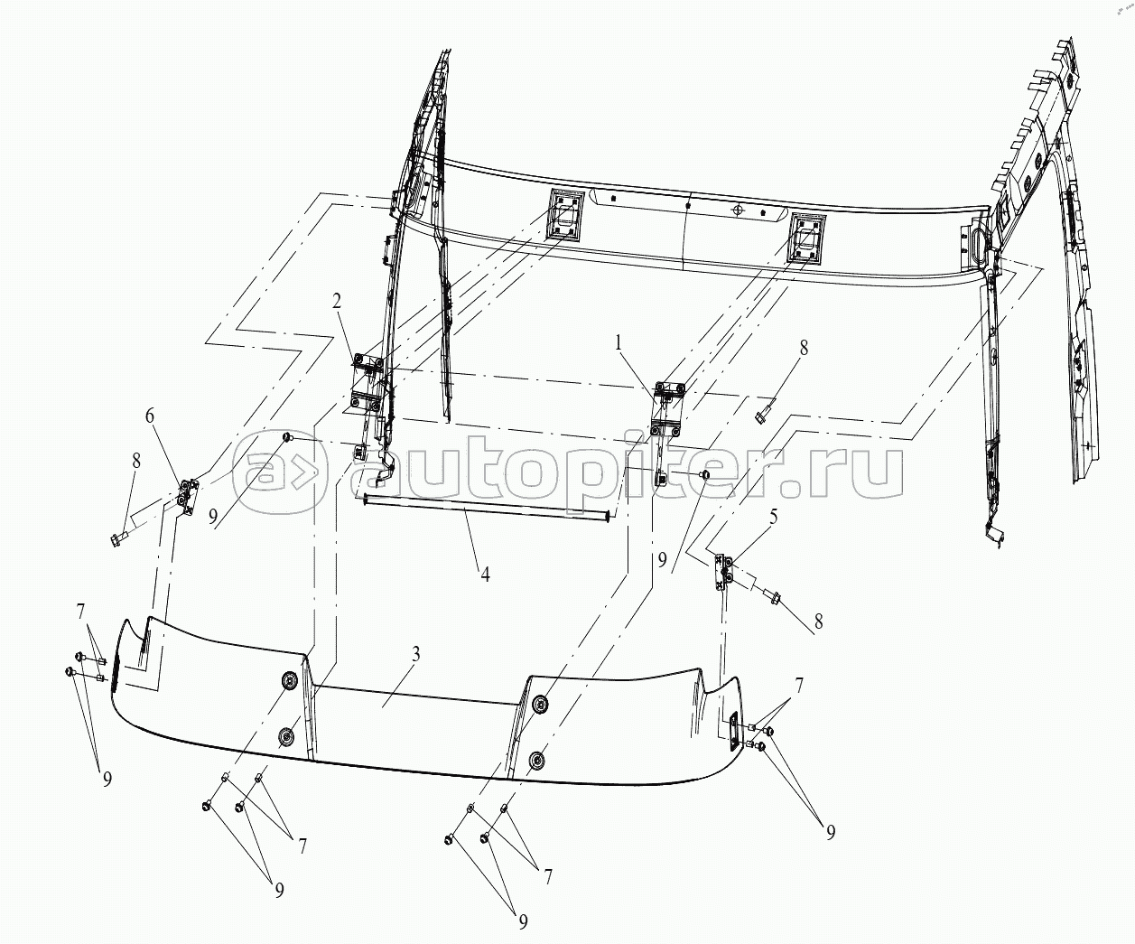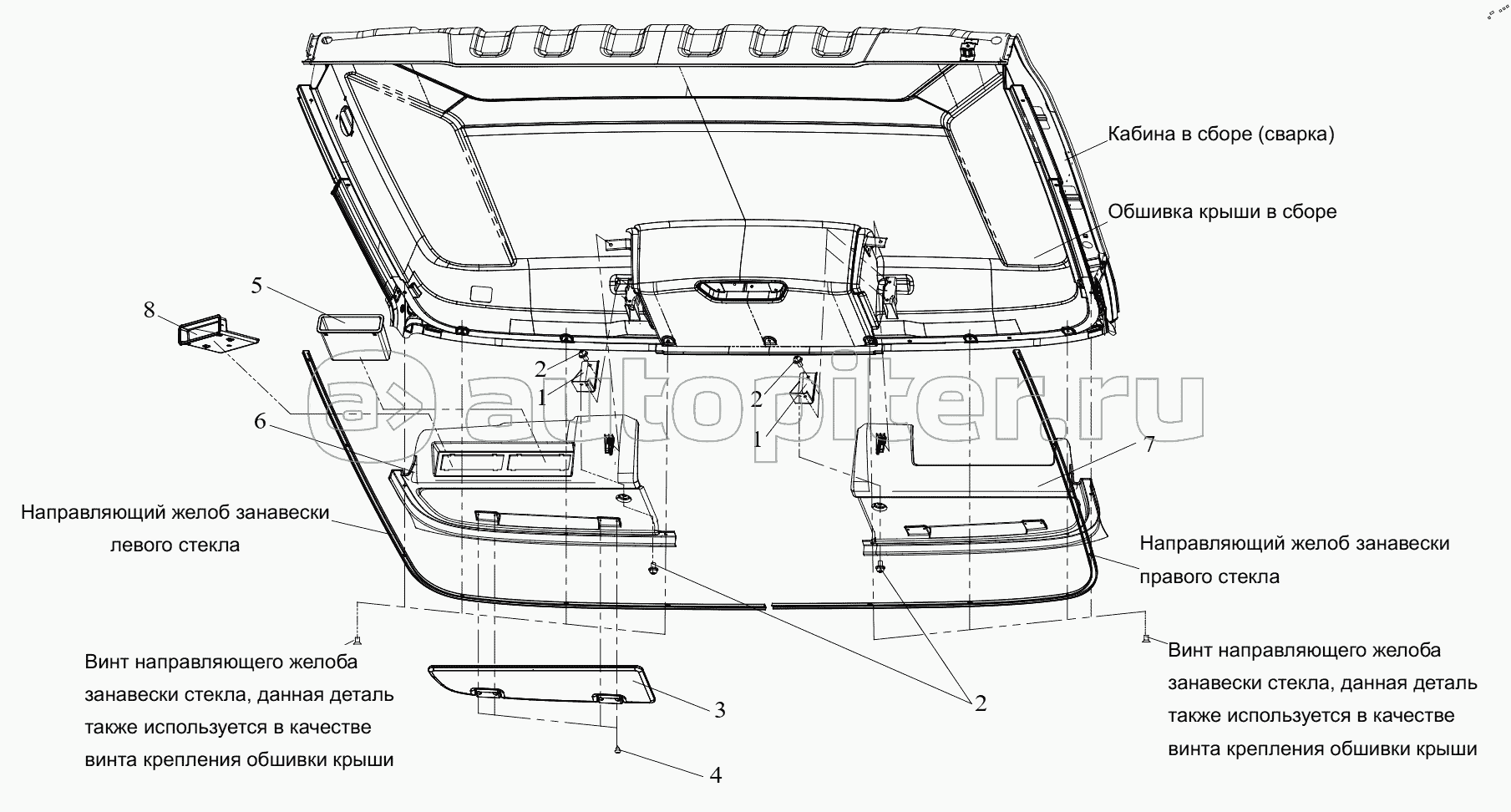 ДвигательТрансмиссияРама и защита ПодвескаРулевое управлениеТормозЭлектрооборудованиеКомплект инструментовПередний бамперКабинаКабина 2Кабина 3
