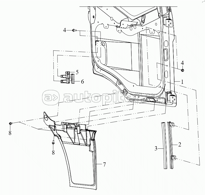 Обшивка боковины и посадочный поручень в сборе (I)