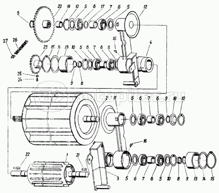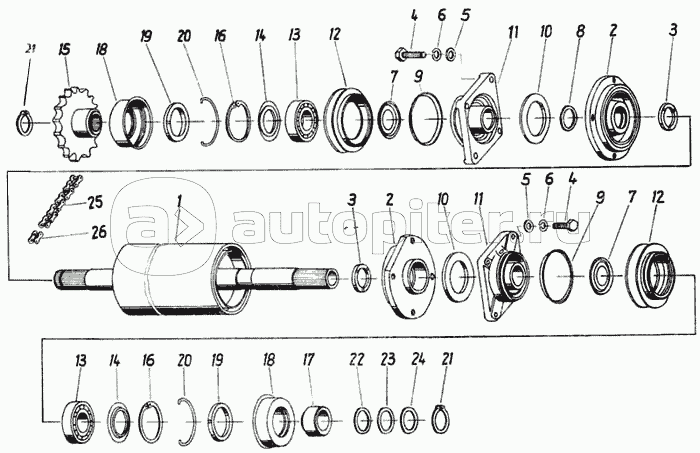 Двухрядный подшипник, вал сцепления