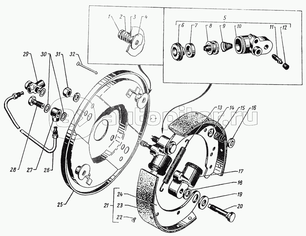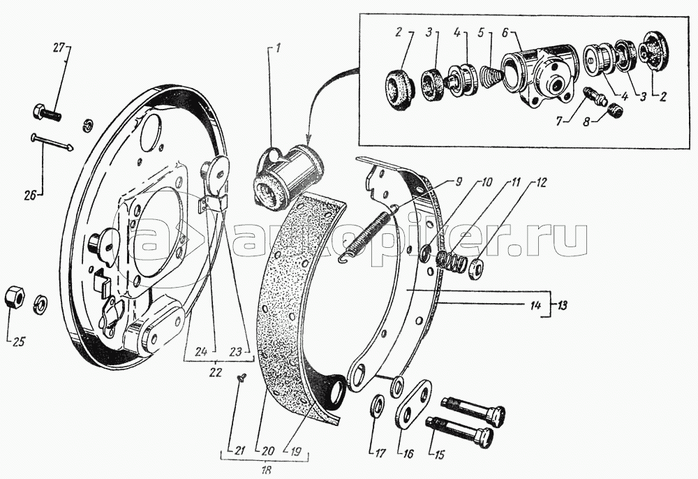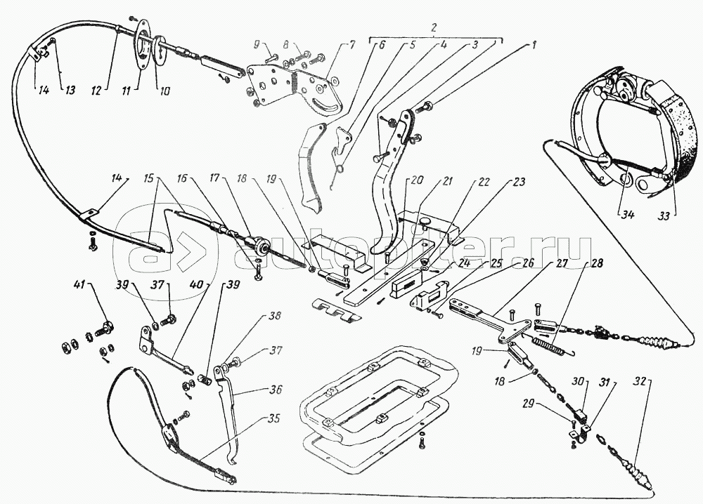 Задние ножные тормоза и тормозные барабаны