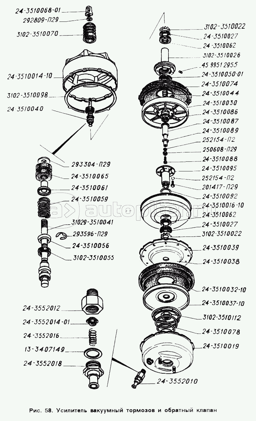 Усилитель вакуумный тормозов и обратный клапан