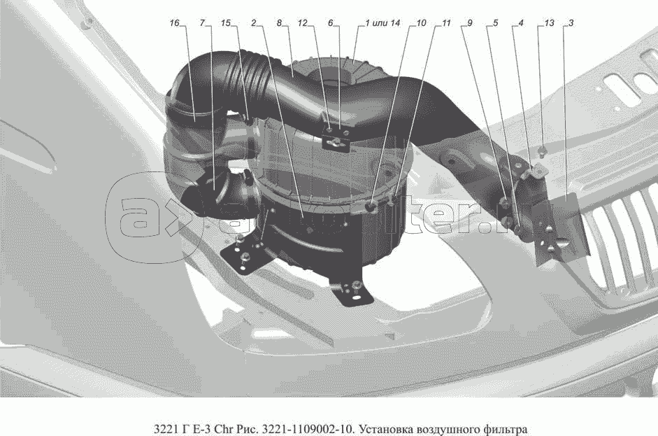 3221-1109002-10. Установка воздушного фильтра
