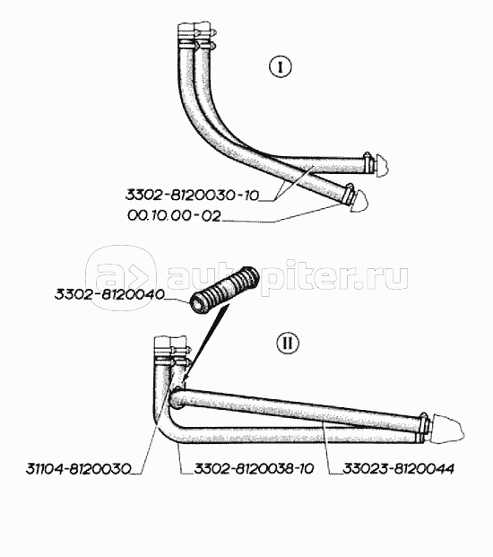 Короб воздухозаборника и трубопроводы отопителя (для автомобилей выпуска с 1998 г. по 2003 г.)