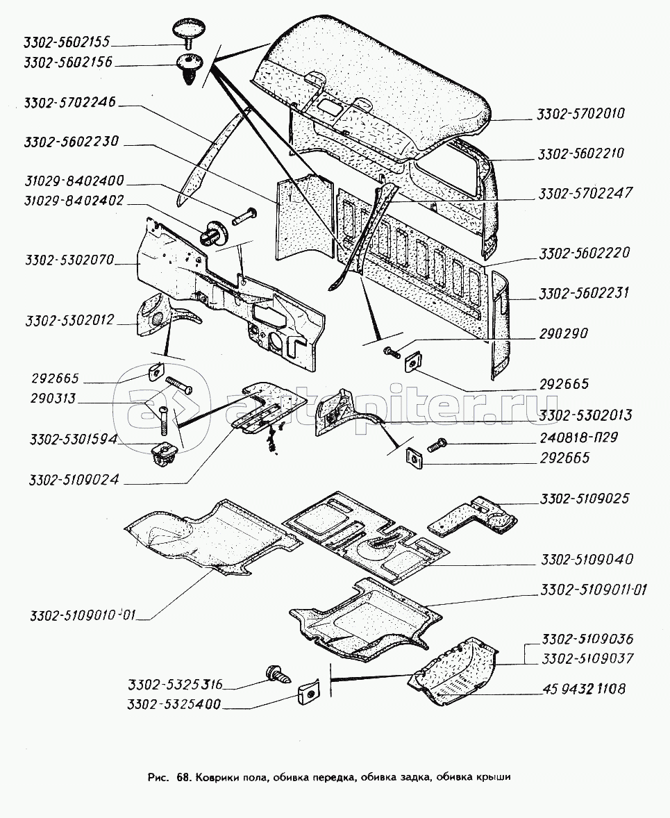 Коврики пола, обивка передка, обивка задка, обивка крыши