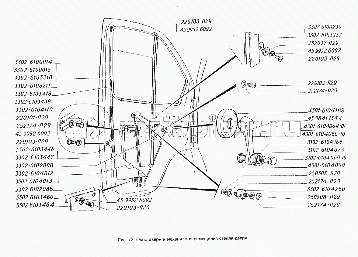 Окно двери и механизм перемещения стекла двери