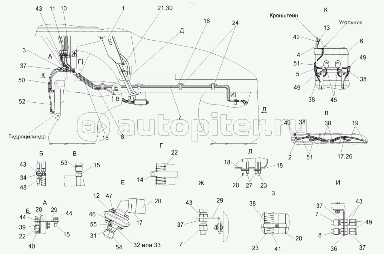 Гидросистема привода ходовой части УЭС-6-0601000 (вид сбоку)