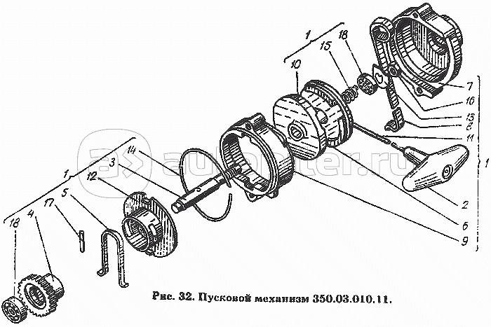 Пусковой двигатель П-350. 350.03.010.00