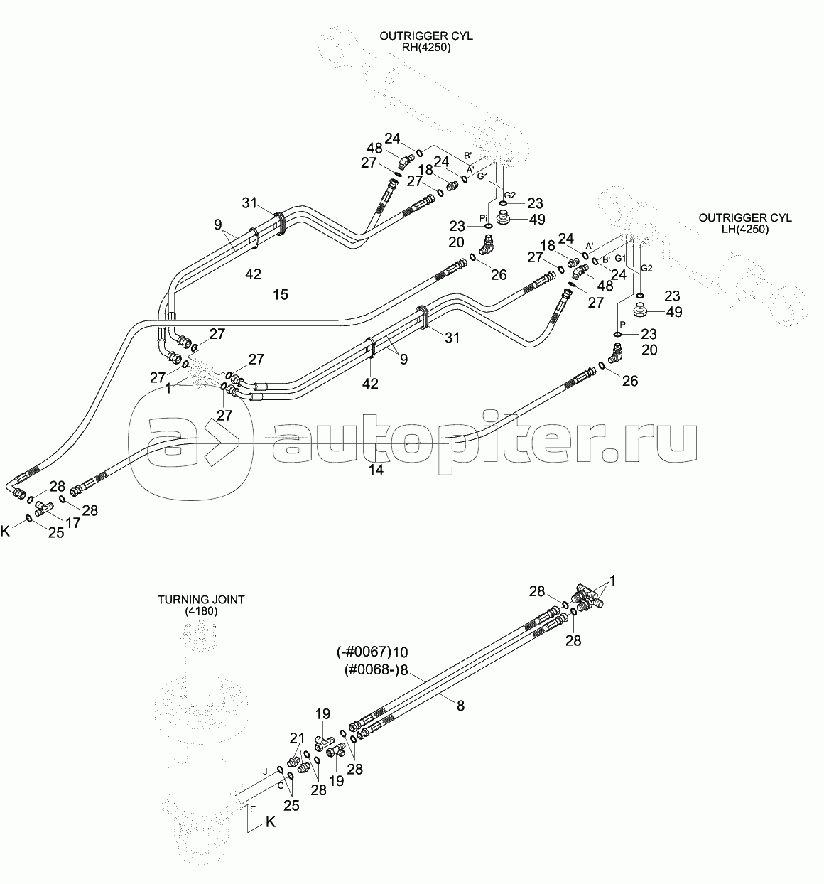 LOWER HYD PIPING (2-OUTRIGGER, #0067-)