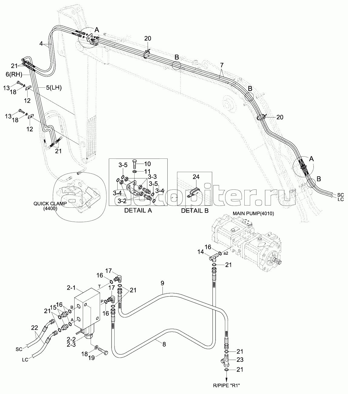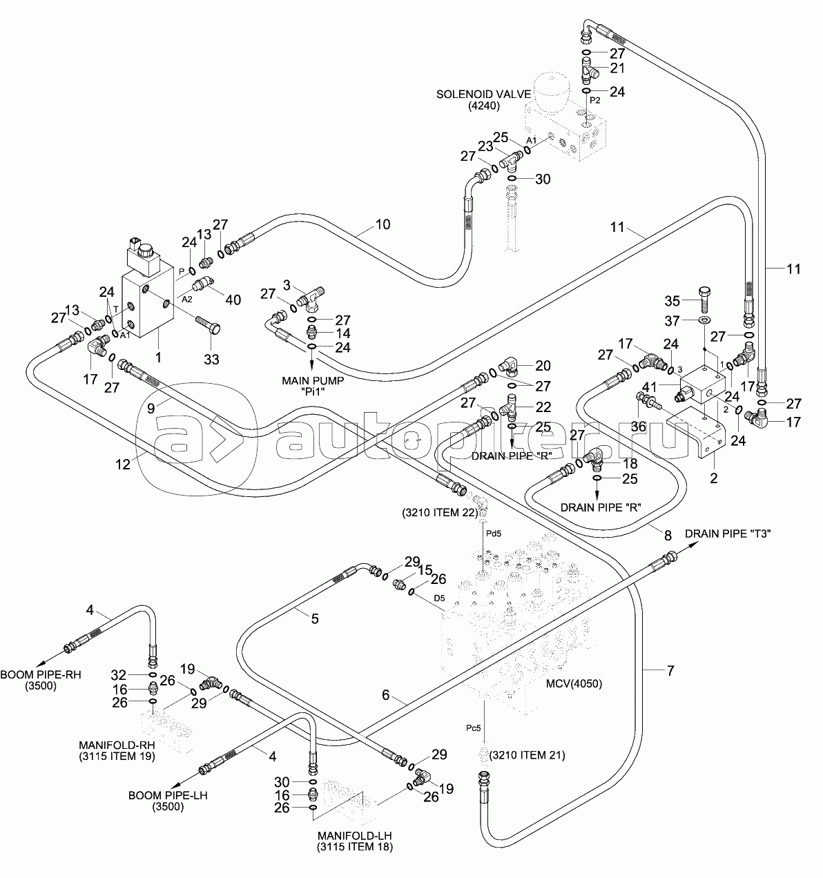 UPPER HYD PIPING 2 (ADJUST BOOM)