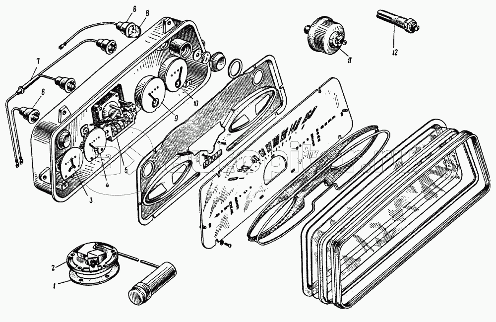 Комбинация приборов, лампы освещения щитка приборов, сигнальные (контрольные) лампы и датчики к указательным приборам