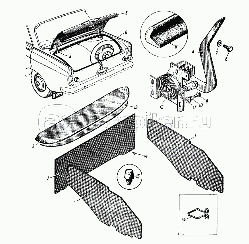 Крышка багажника с петлями, обивка и термошумоизоляционные панели (съемные) задка кузова автомобиля модели 412