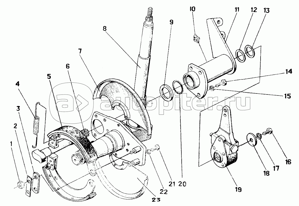 Ось со ступицей и тормозами СПТ19010, СПТ19010-01