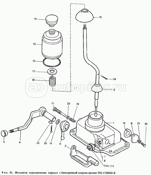 Механизм переключения передач с блокировкой запуска дизеля Т25-1703050-Б