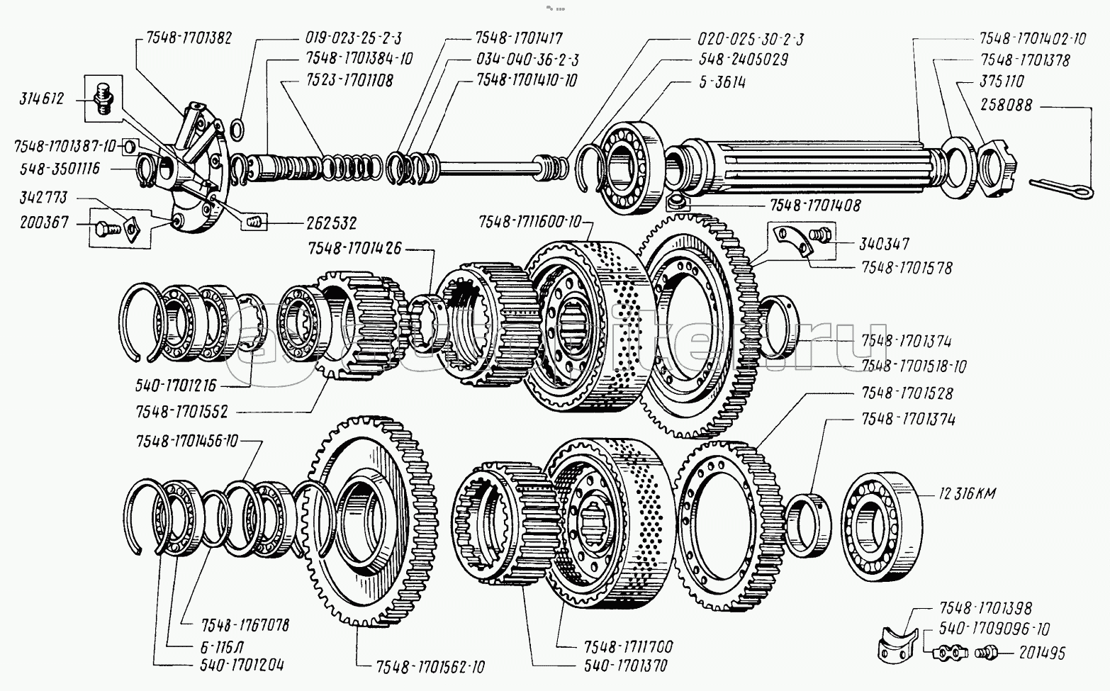 Схема деления автомобиля-самосвала на составные частиДвигатель и его системыПередача гидромеханическаяТрансмиссия механическая (передача карданная, механизм отключения трансмиссии, мосты передний и задний)РамаПодвескаКолеса и шиныУправление рулевоеСистема тормознаяЭлектрооборудованиеКабина и оперениеКузовГидросистема опрокидывающего механизма кузова