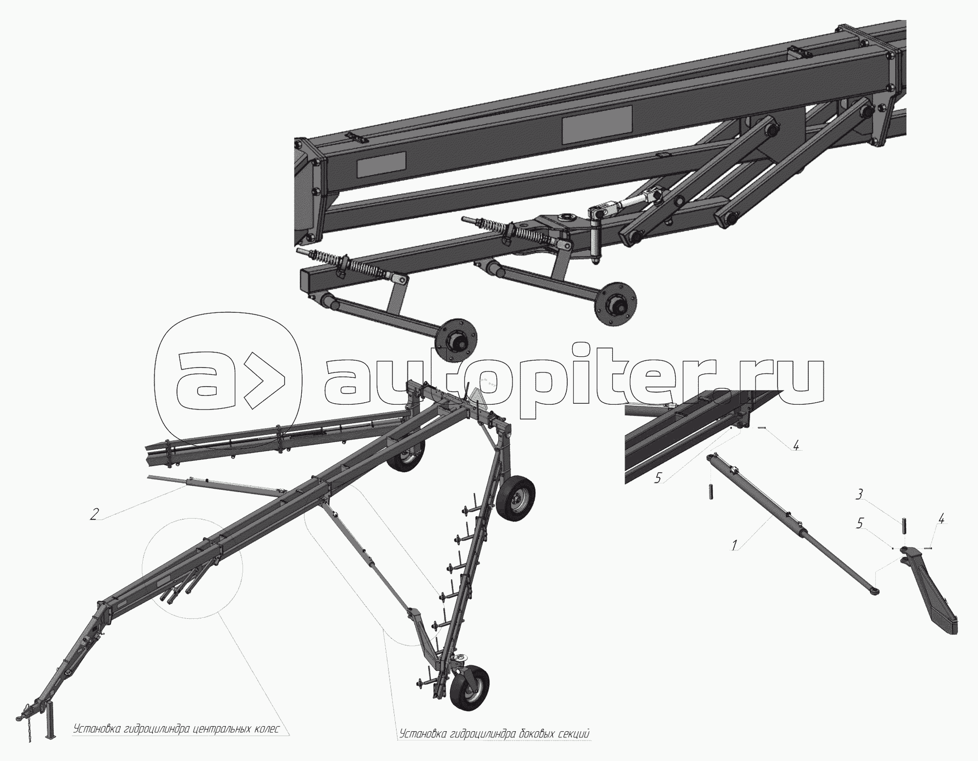 Установка гидроцилиндра центральных колес