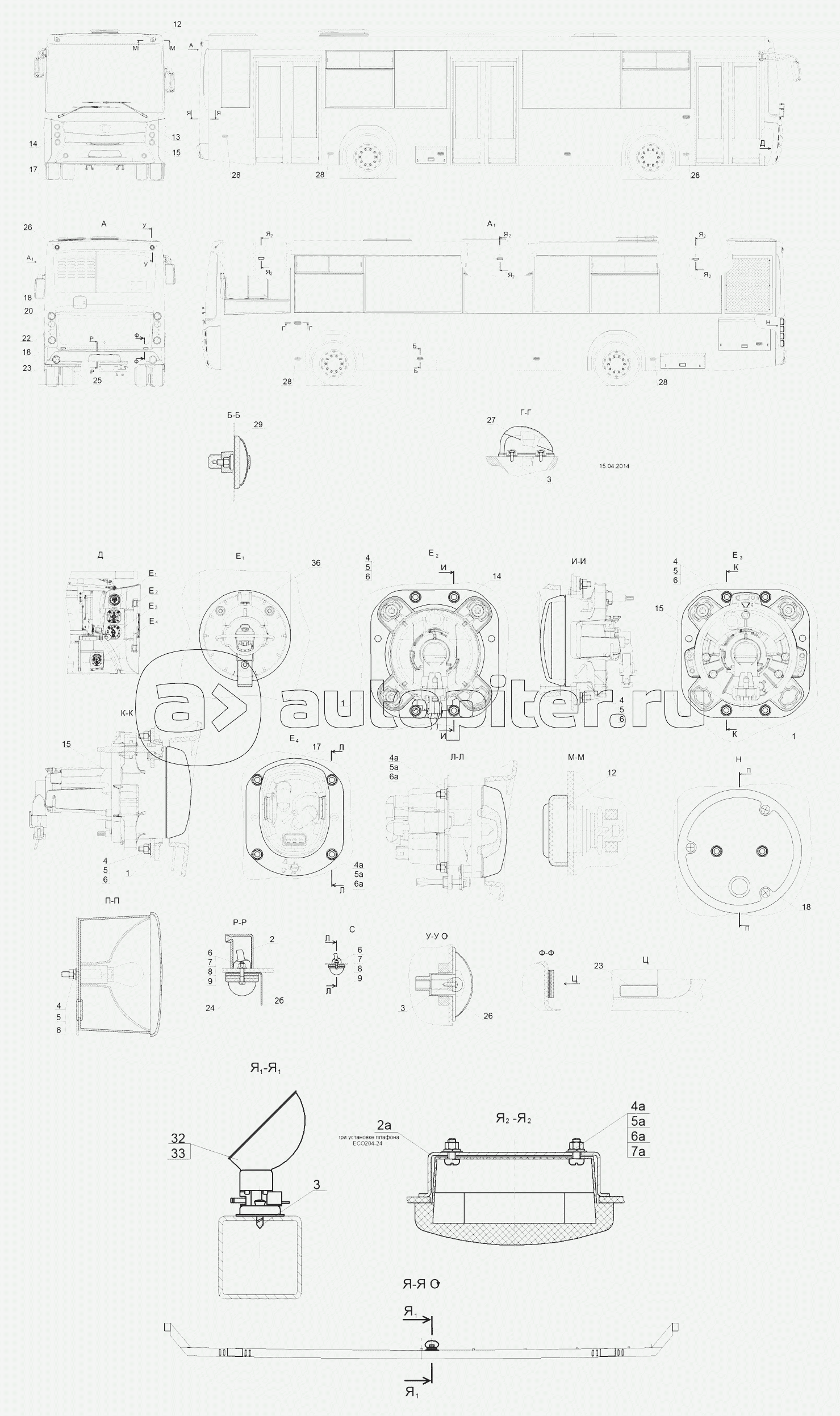 Общий вид автобусаЭлектрооборудованиеПринадлежностиОборудование кузоваВентиляция и отоплениеКузов в сборе
