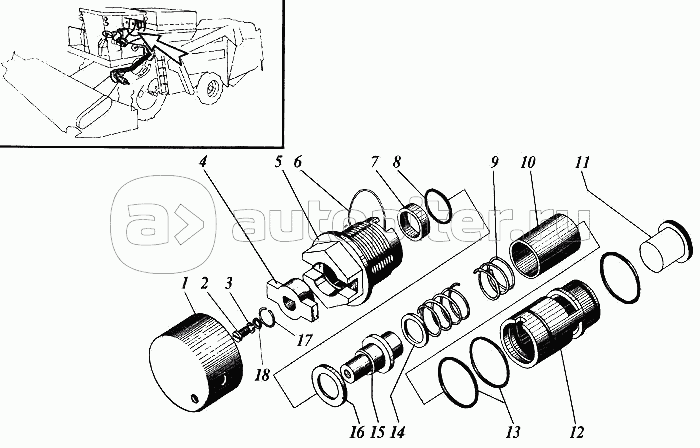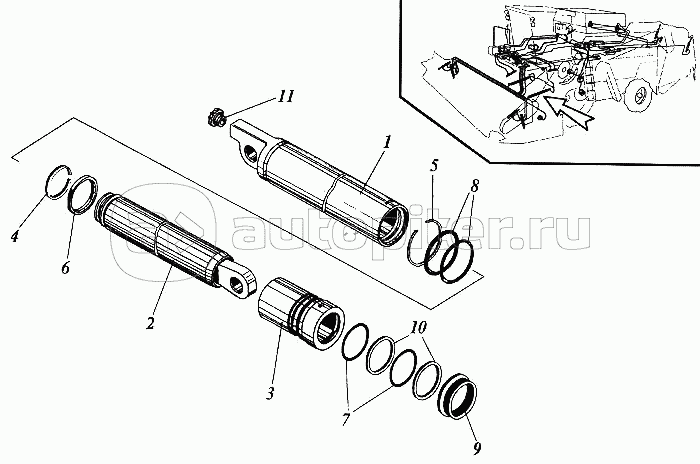 Гидроцилиндр горизонтального перемещения мотовила