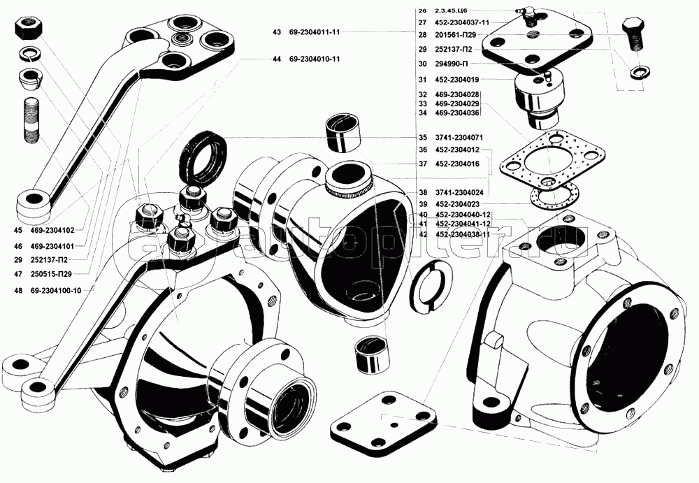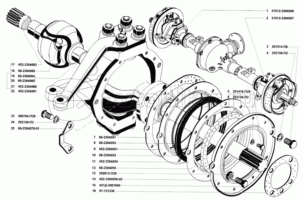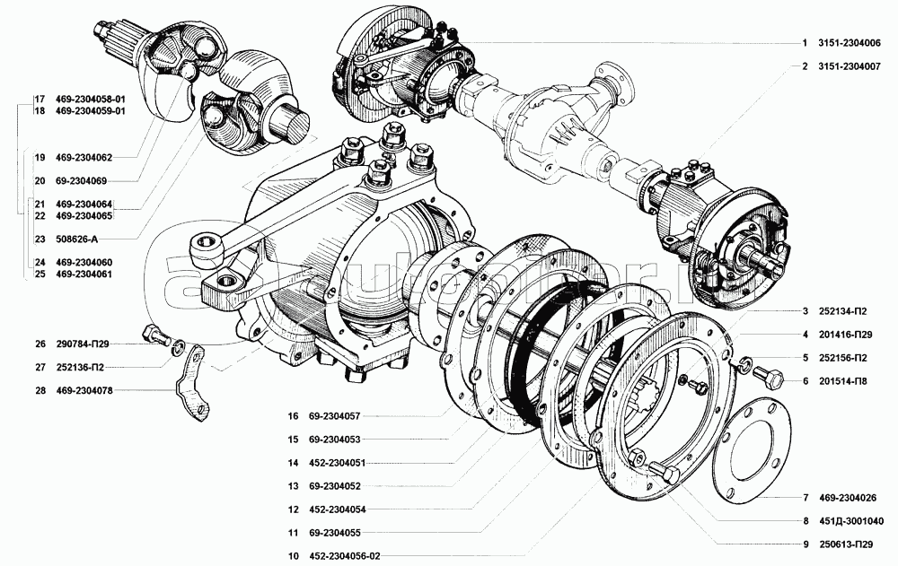 Мост передний ведущий в сборе, картер и кожухи полуосей переднего моста
