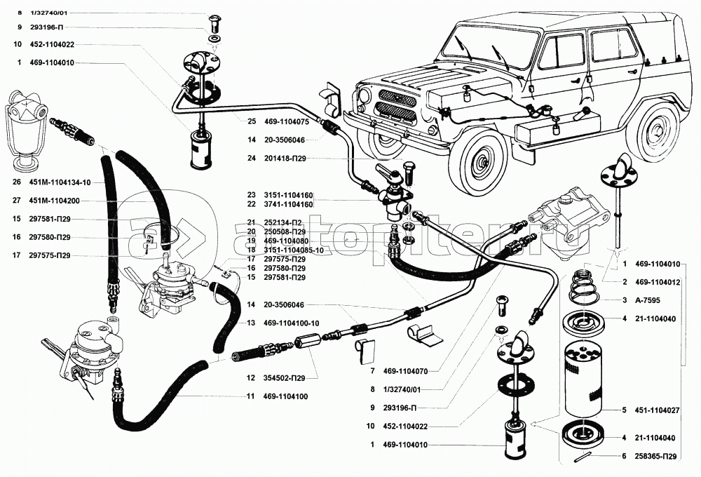Фильтр грубой очистки топлива, клапан топливный электромагнитный, фильтр тонкой очистки топлива