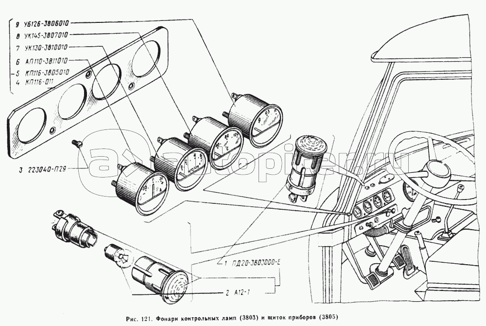 Щиток приборов, фонари контрольных ламп