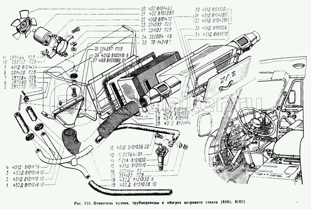 Отопитель кузова и трубопроводы, обогрев ветрового стекла