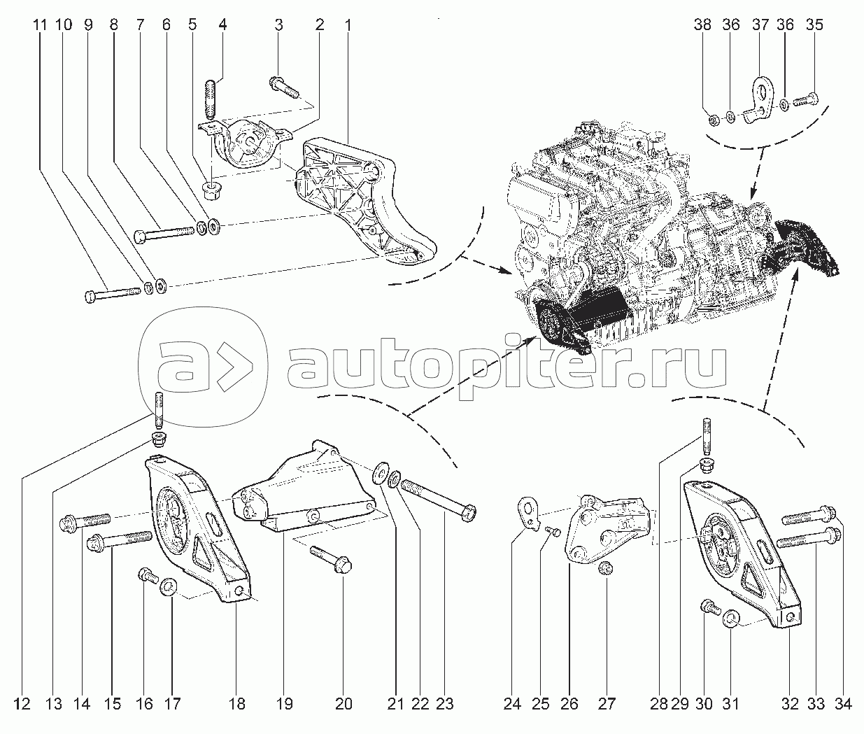 198020. ОПОРЫ, КРОНШТЕЙНЫ ПОДВЕСКИ ДВИГАТЕЛЯ
