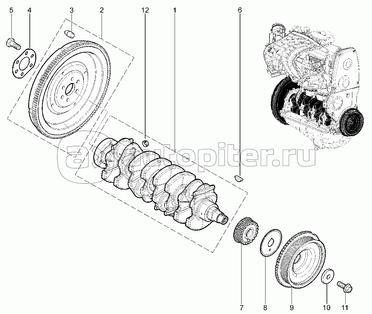 Вал коленчатый, маховик (8 кл.- 11186)
