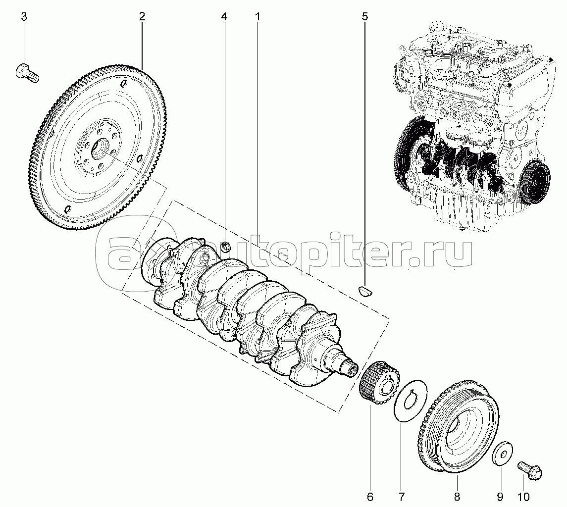 Вал коленчатый, маховик (16 кл.- 21126)