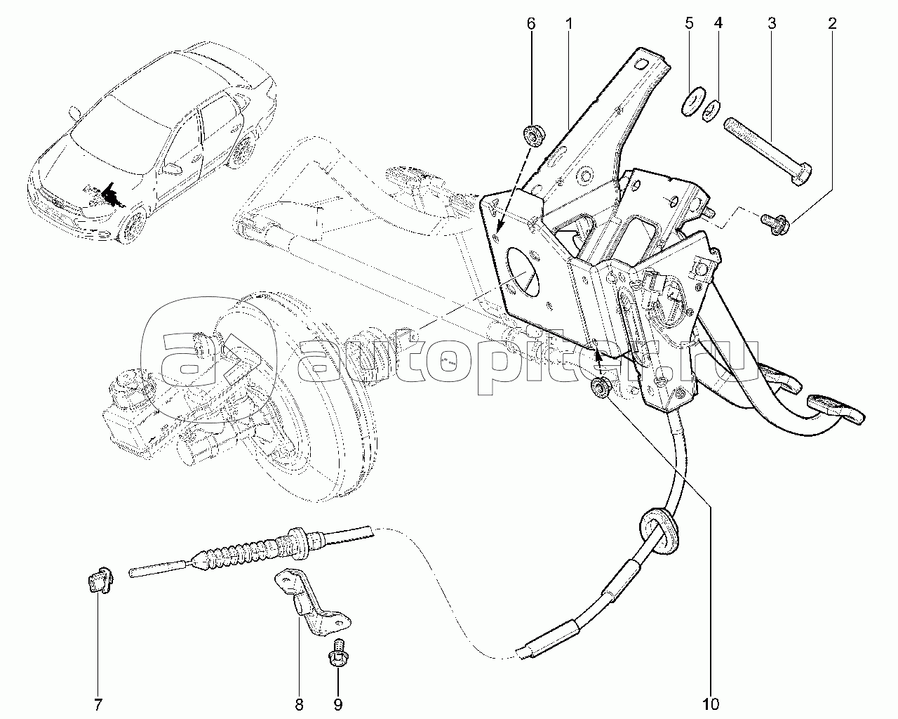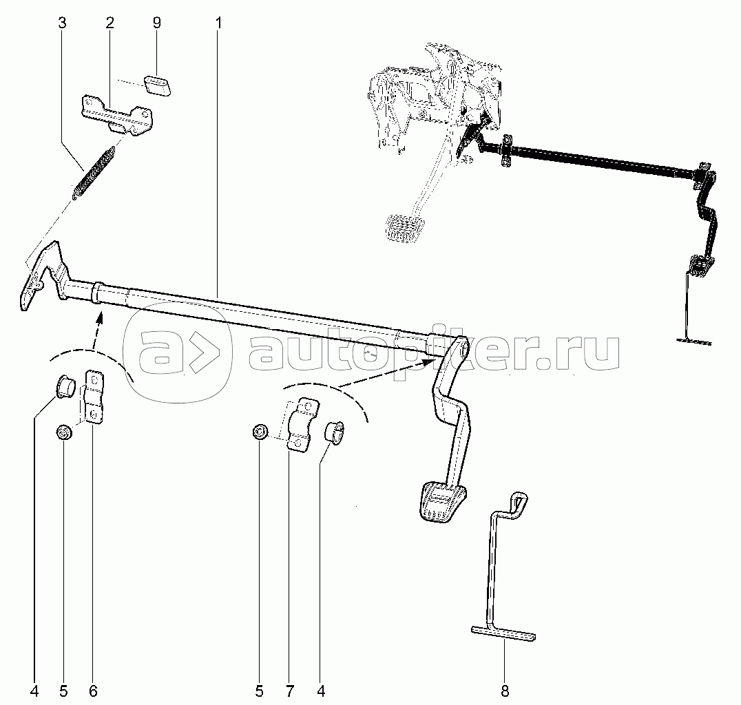 Привод тормоза и сцепления (учебный автомобиль с механической КПП)(деталировка)