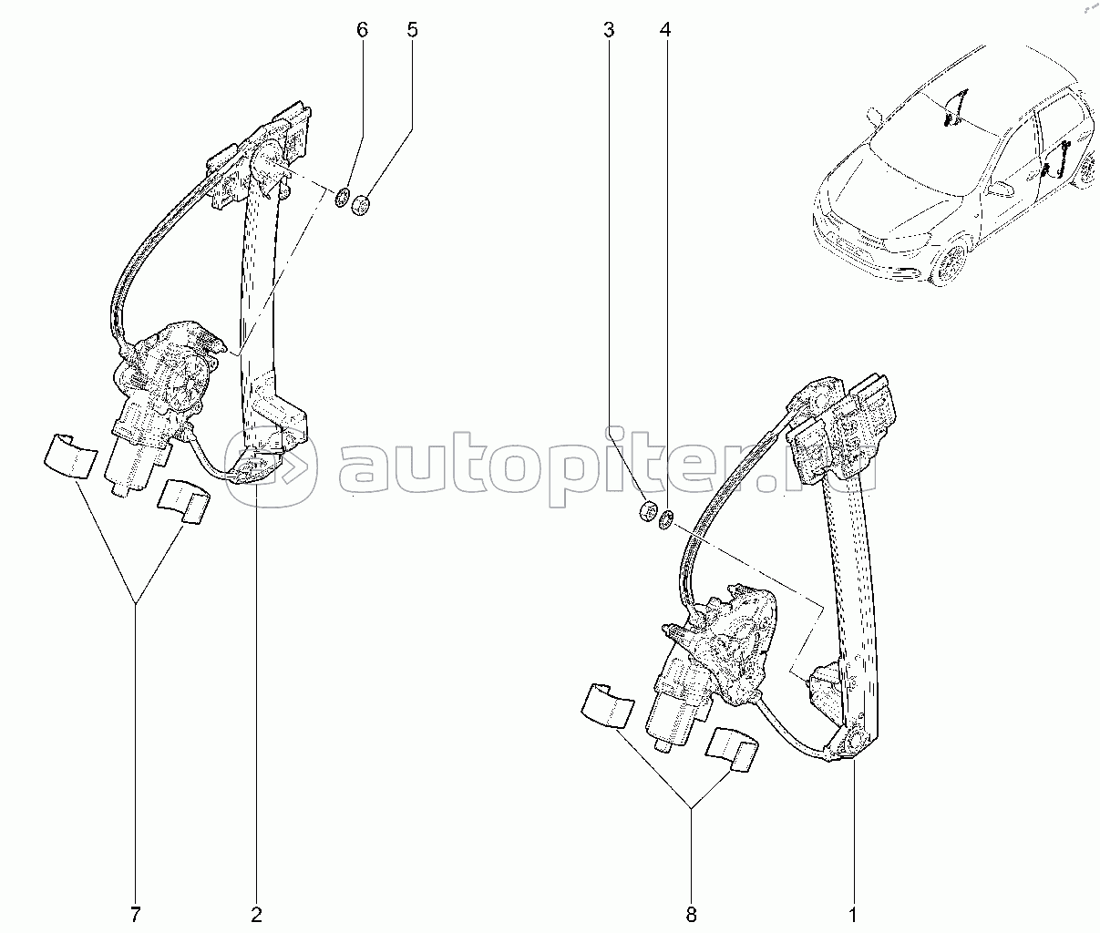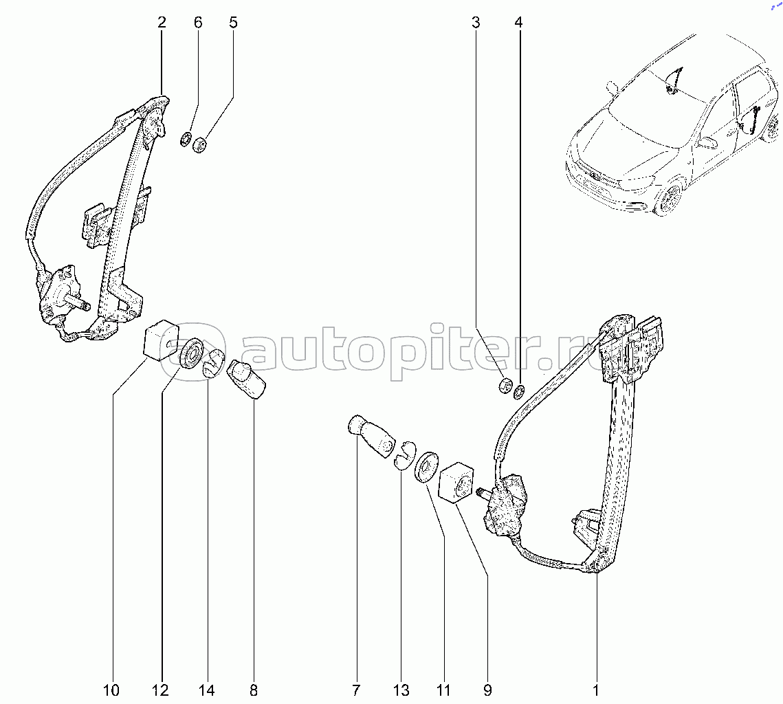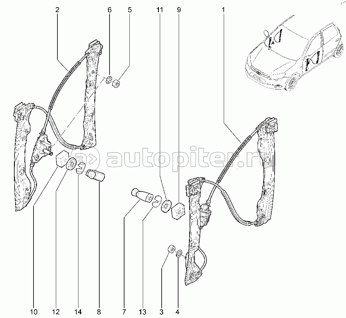 472010. Механические стеклоподъемники передних дверей