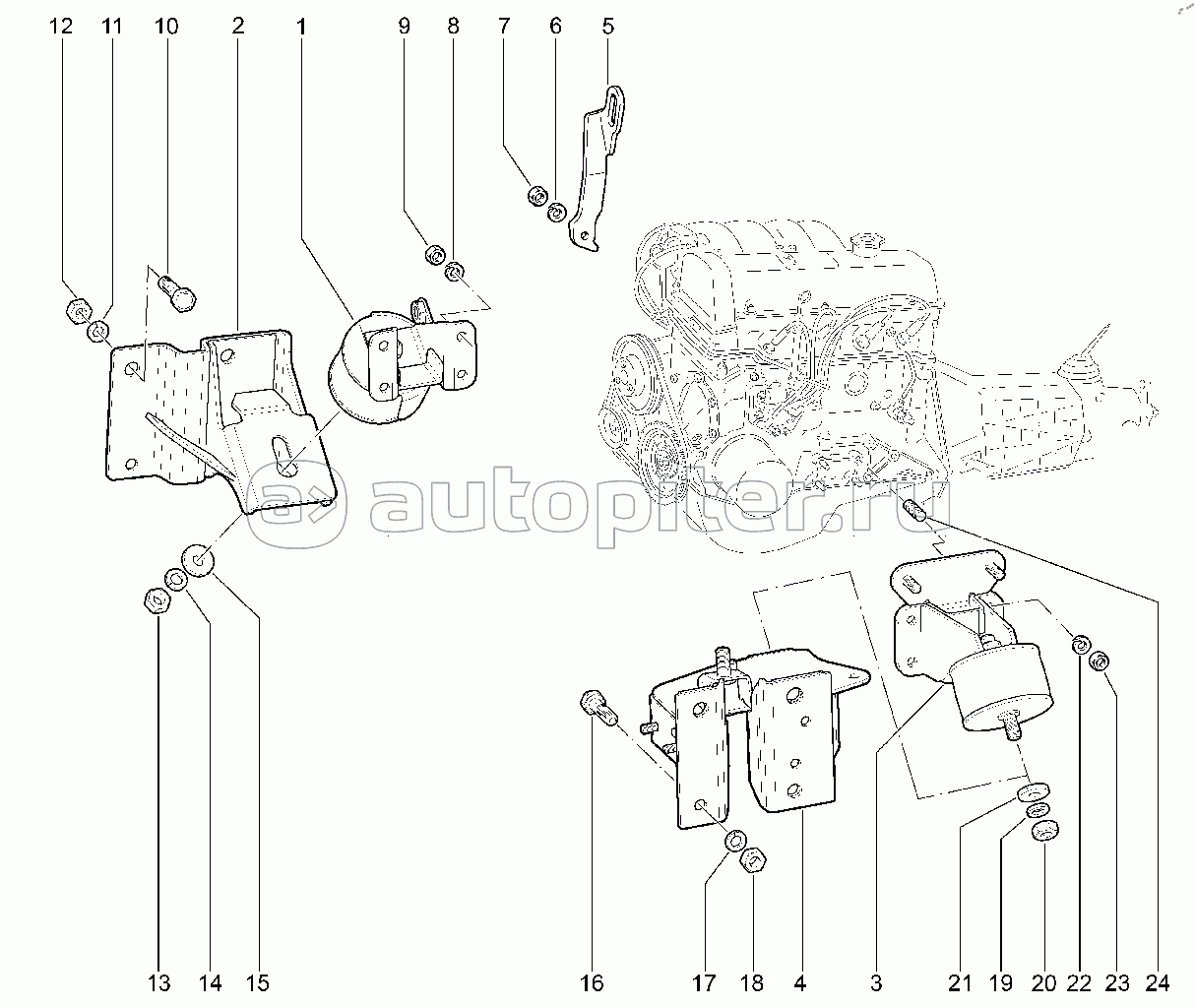Двигатель в сборе, подвеска двигателя